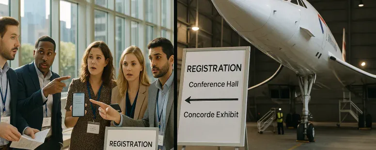 Practical warning: When you plan an event near any Concorde-related site or brand, double-check all signage and emails. Small language slips create big friction for attendees and partners.